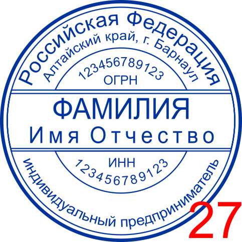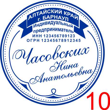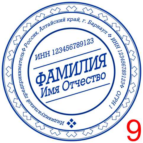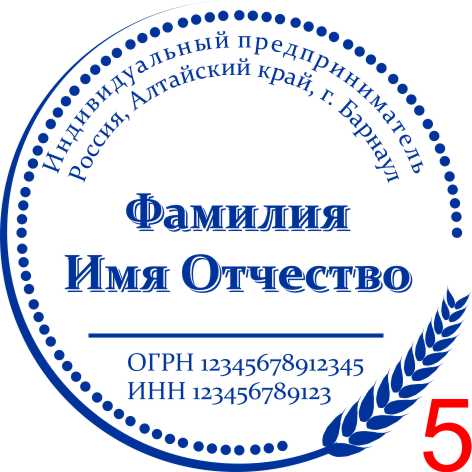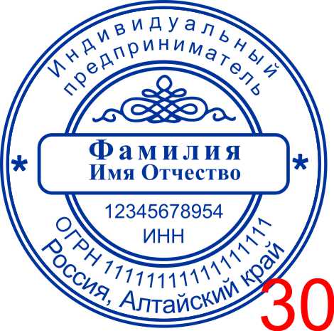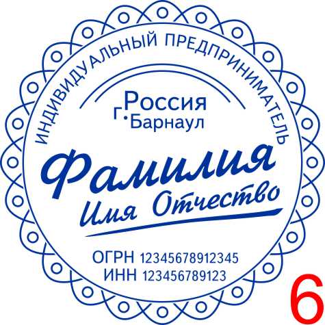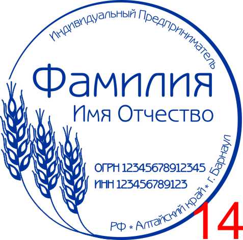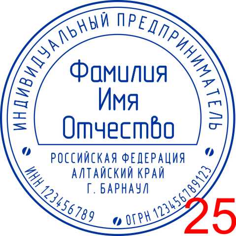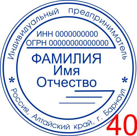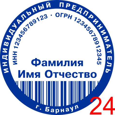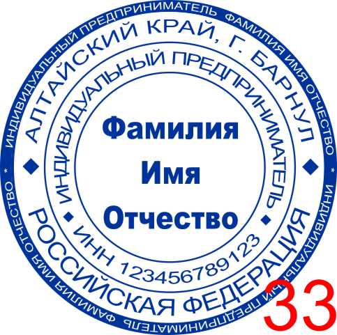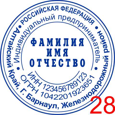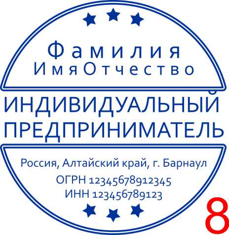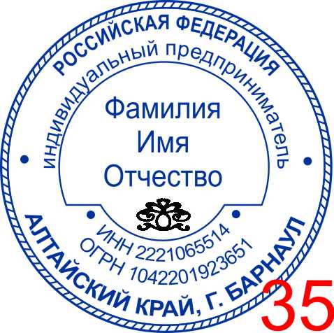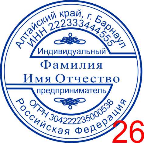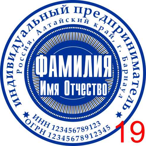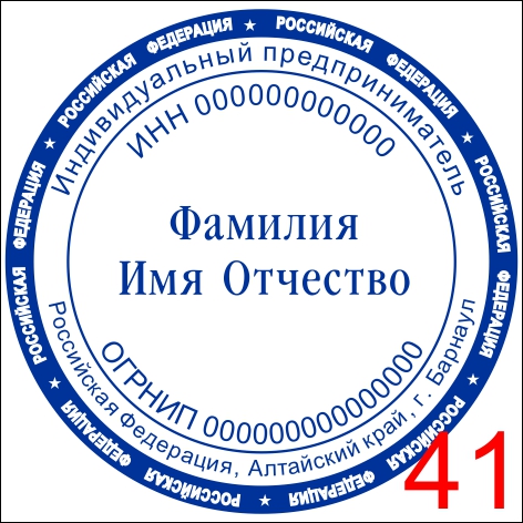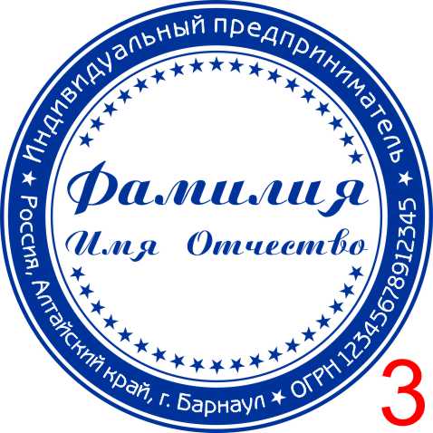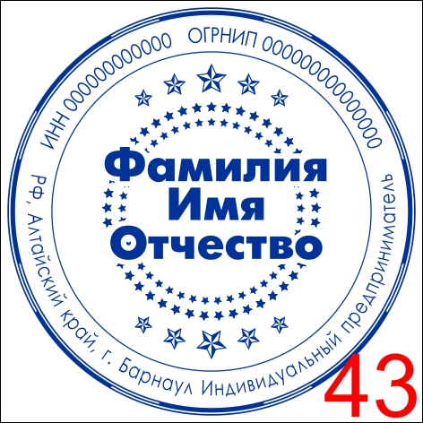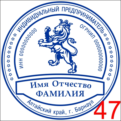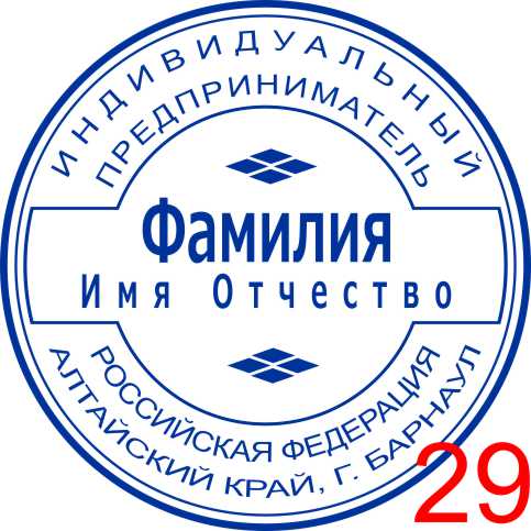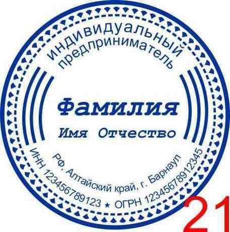 Пример : Мы хотим заказать изготовление печати Индивидуального предпринимателя , макет № 2