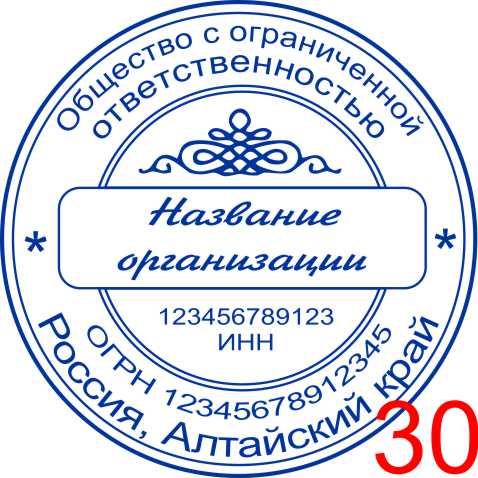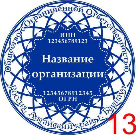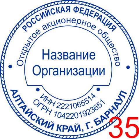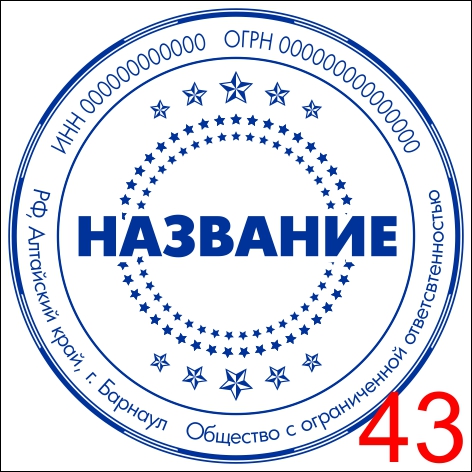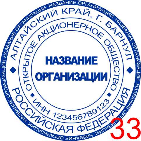 Пример : Мы хотим заказать изготовление печати ОРГАНИЗАЦИИ, макет № 10.