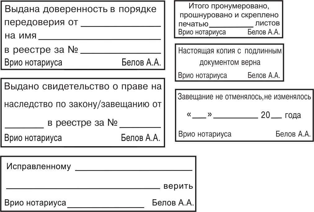 | Штампы "по доверенности"